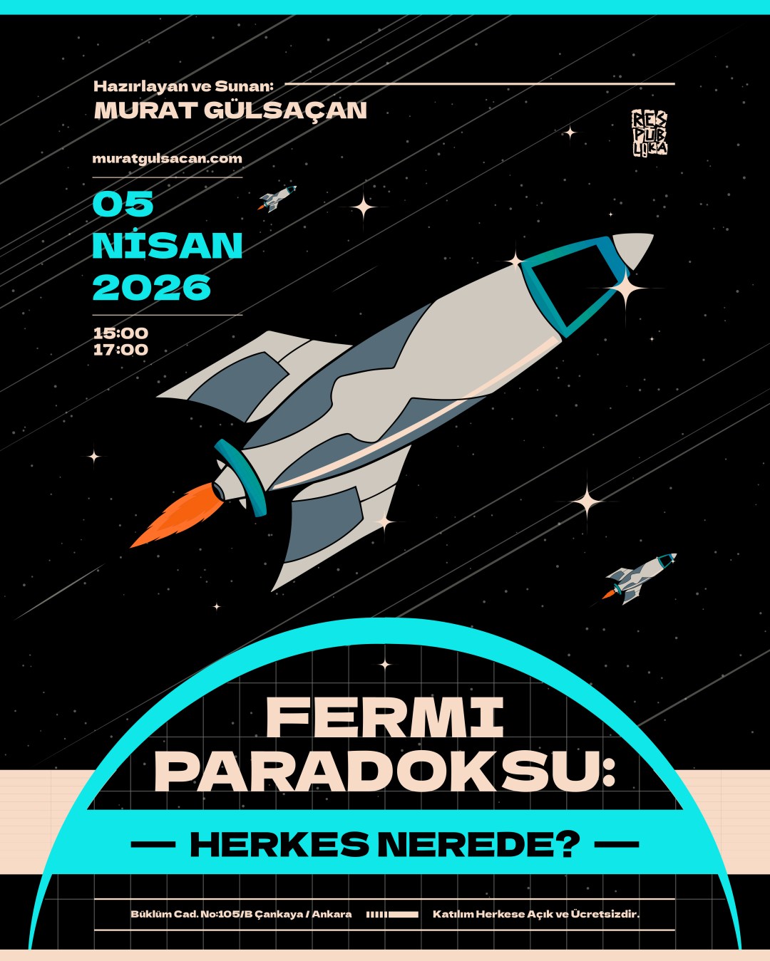 Bu kadar büyük bir evrende neden tek başımızayız? Etkinlik 5 Nisan 2026 İlk Temas Günü’nde Respublika Kafe’de. Beklerim.